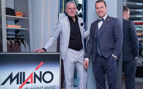 Step 1 auf der Reise bis zur Traumhochzeit: Bräutigam Nikolas sucht den perfekten Anzug, mit dem er seiner Fabiana an ihrem großen Tag gegenübertreten möchte. Bei Milano Männermode in Innsbruck wird er fündig: Inhaber Franz Wieshaber unterstützte ihn bei der Suche nach dem passenden Anzug. Geworden ist es dann gleich das erste Modell, das der zukünftige Bräutigam anprobierte: ein elegantes blaues Ensemble mit Anzugweste und Fliege. Damit ist Nikolas perfekt ausgestattet für seine Trauung auf der Hochzeiten & Feste 2025.
